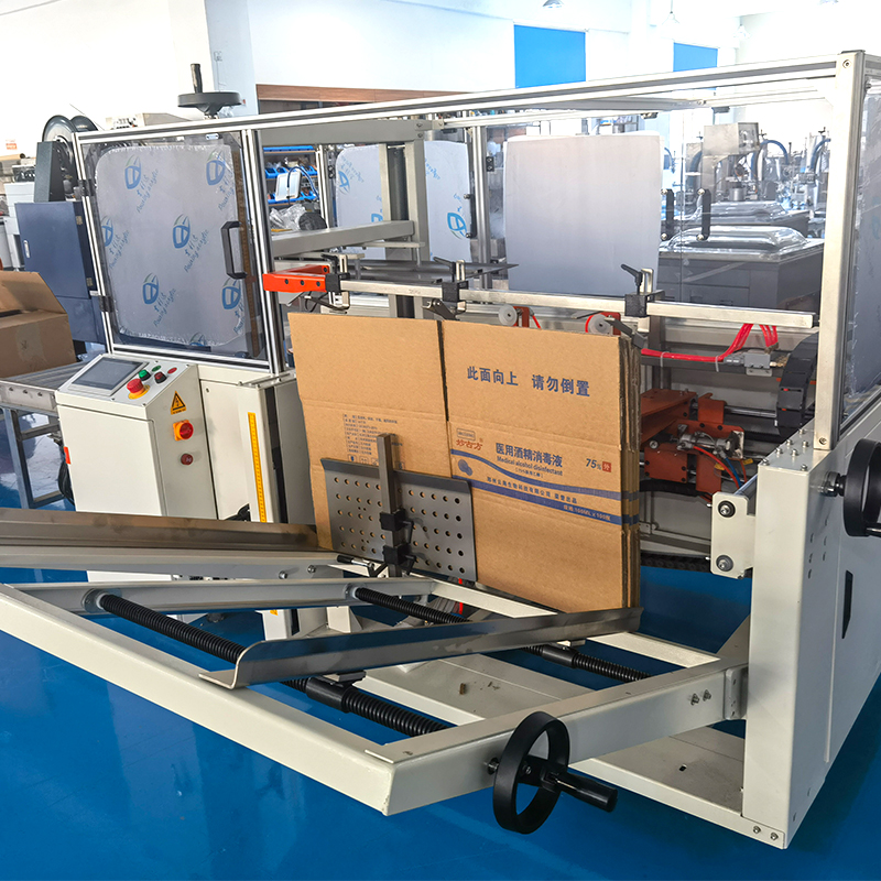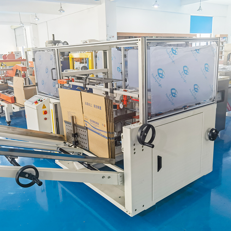 ②精準成型:設備搭(dā)載高精度光電(diàn)傳感器(qì)與機械定位裝置,可對紙箱的尺寸(cùn)、位置進行實(shí)時監測與校準。在紙箱折疊、封底過程中,通過精密的機械(xiè)折(shé)邊機構(gòu)與膠帶(dài)貼合係統,確保紙箱折角精準、封(fēng)底牢固。