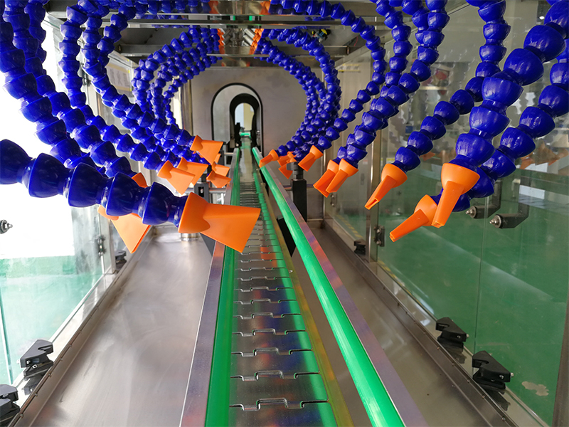 殺菌吹瓶:空瓶進(jìn)入全自動空罐殺菌吹掃機,進行清潔和殺菌處理。